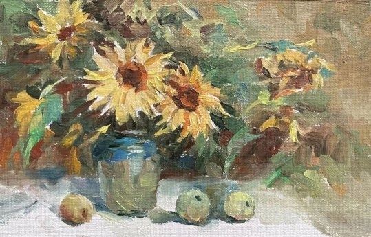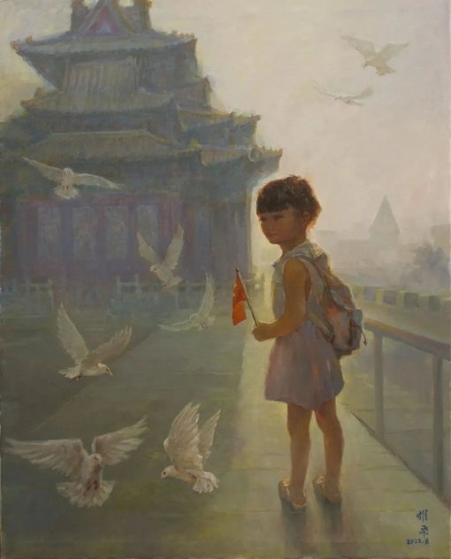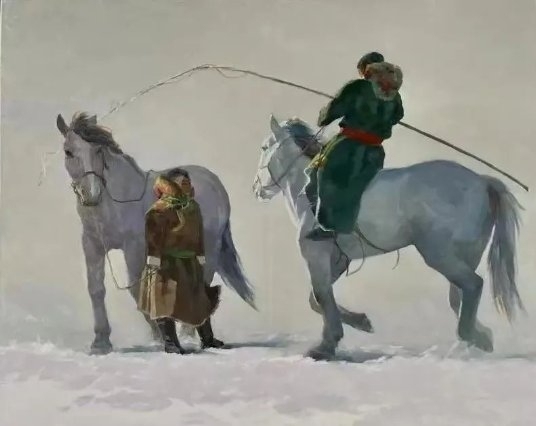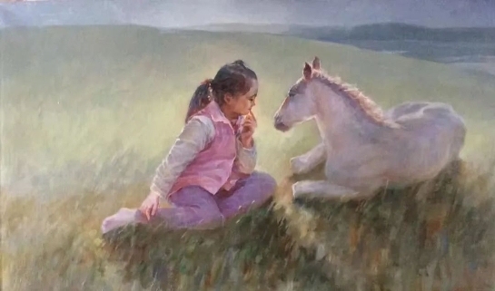 温雄飞:在不同的主题创作中,我注重内心的感受,注重描写绘画一切美好的,让人们产生对美好生活向往的人和景色。尤其是少年儿童与动物、植物、河流、山川等和谐共处的画面。例如:我的部分油画:《对话》《我和我的黄骠马》《冬至》《彩蝶》《余晖下的铁道博物馆》等。