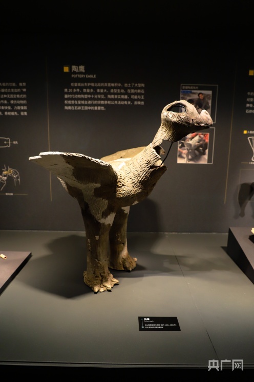 神木石峁遗址出土的陶鹰(央广网记者侯凯奇摄)