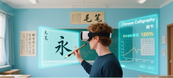在教育领域,孔子学院的“黑科技课堂”堪称典范。他们把课程制作成数字资源包,衍生出一系列“中文+”教学模式,让茶文化、武术、书法等传统文化内容以更灵活的方式走向世界。Google Trends显示“Chinese Calligraphy”搜索量5年增长120%,看似印证了线上课程的受欢迎度,背后则是全球青年从”好奇围观“到“深度实践”的文化态度转变。“中文+文化”借助技术实现深度融合,线上多模态教学借助VR技术还原文化场景,英国伦敦孔子学院与华为共建的“5G云端文化课堂”,让中英学生能实时互动表演京剧,在虚拟水袖挥动间完成四声调值训练。这种“技术+文化”的复合场景,让语言学习与文化体验形成闭环。芬兰元宇宙沉浸式课堂中1:1还原北京胡同场景,将文化场景从“展示”变为“生活体验”,学生在虚拟点餐、问路的互动中,完成的不仅是语言习得,更是对“热情好客”文化内涵的理解,这正是“中文+技术+文化”传播的“穿透性”价值。