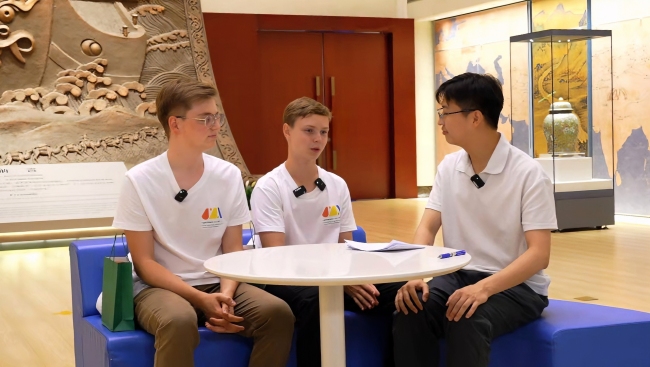 “大家好,我叫迪米特里,来自俄罗斯。”采访开始,迪米特里主动地用中文做了自我介绍。坐在他旁边的Rustam Asadchikov,Rustam今年16岁,同样来自俄罗斯。虽然已经是第二次到中国,两人对这片土地的风土人情依然充满了好奇。“能再次来到中国,我非常高兴。”Rustam微笑着说。
