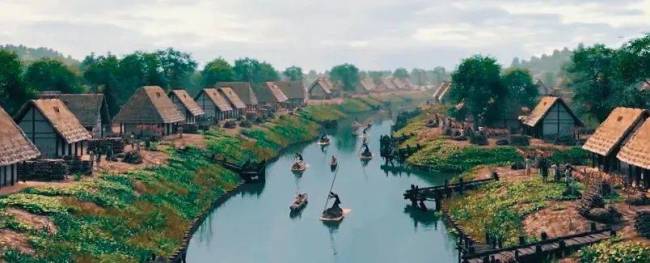 图为良渚古城河道场景复原图