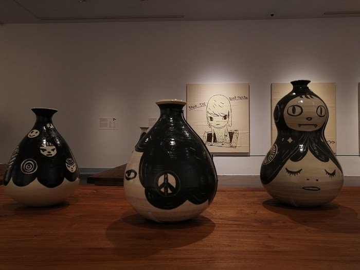 以绘画享誉全球的奈良美智始终在拓展自己的创作领域。从2007年起,他多次驻留在以信乐烧闻名的“滋贺县立陶艺之森”学习制陶。本次展览展示了奈良美智2018年创作的部分陶瓷作品,他将和平标志与人物形象相融合,从歌名、歌词及自己的想法中提取日语、英语和德语文本装饰。提及这些创作,奈良美智说:“在某种程度上,它使我想起东方的美学与哲学,也像是苦行僧的训练。”