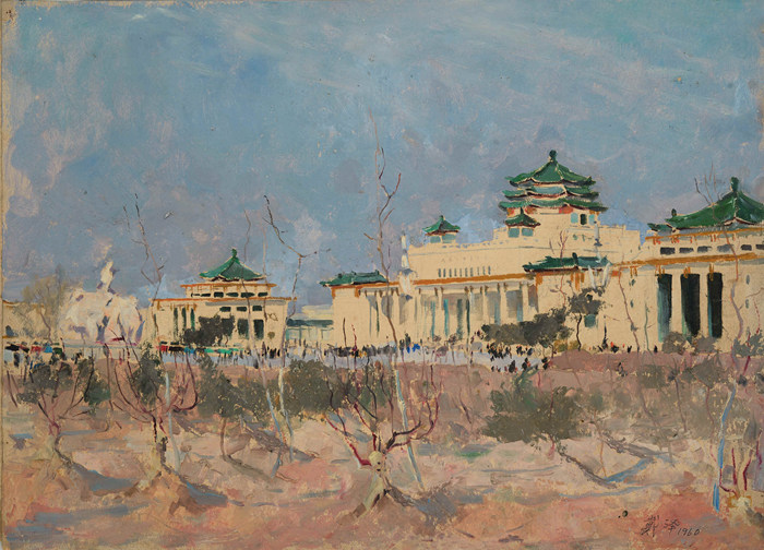 竣工后的农展馆 纸本油画 36.9×51.2cm 1960年