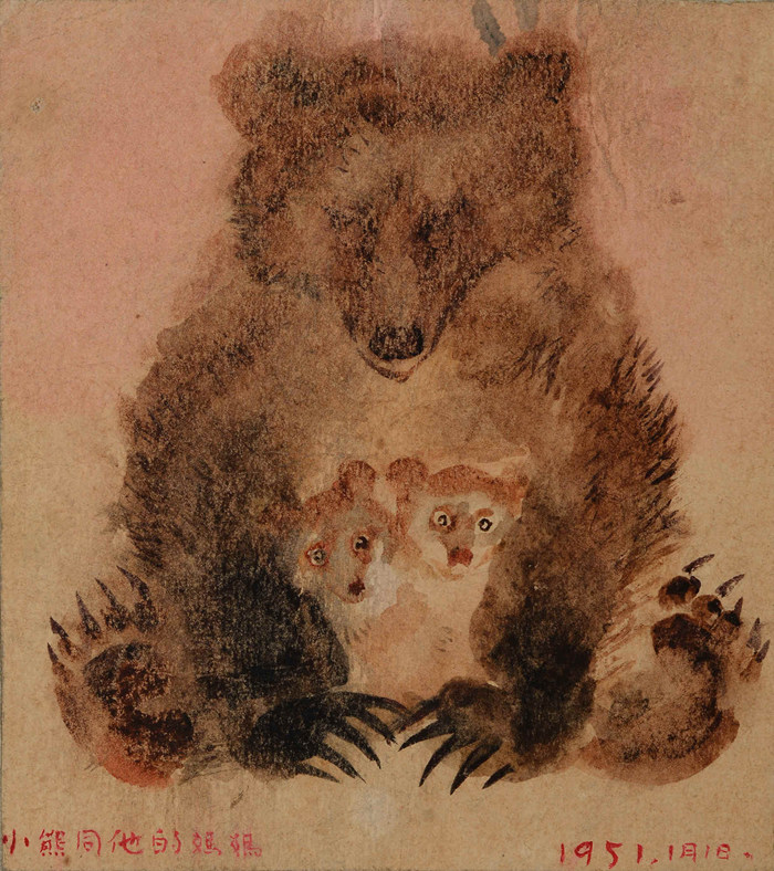 小熊同他的妈妈 纸本水彩 32.3X25.2cm 1951年