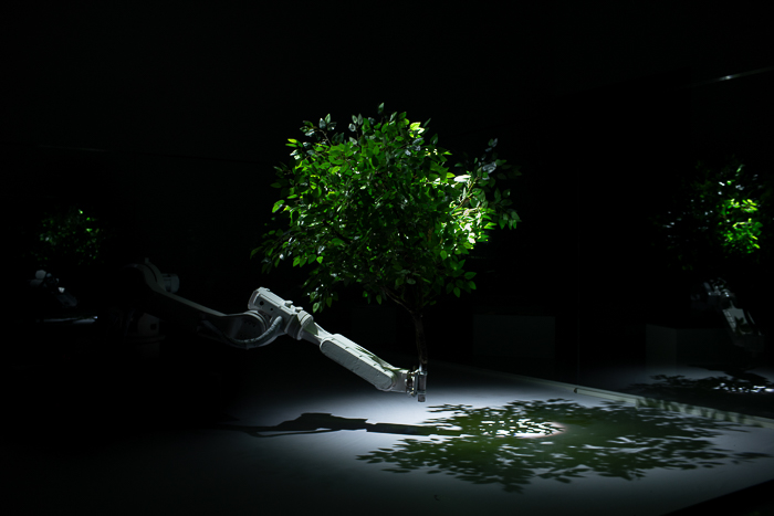 由于现代医学的介入,人类自然选择的进程大大减缓。同时人类试图利用科技代替自身的进化。机械代替身体去进化,人工智能代替大脑去进化。每一场危机同时都是倒逼人类进化的动力。此次新冠大流行,推动生命科学在mRNA研究上的突破的同时,展现了信息科技发展的伟大成果,作品试图探讨对生物进化、科技发展和艺术创新的思考。