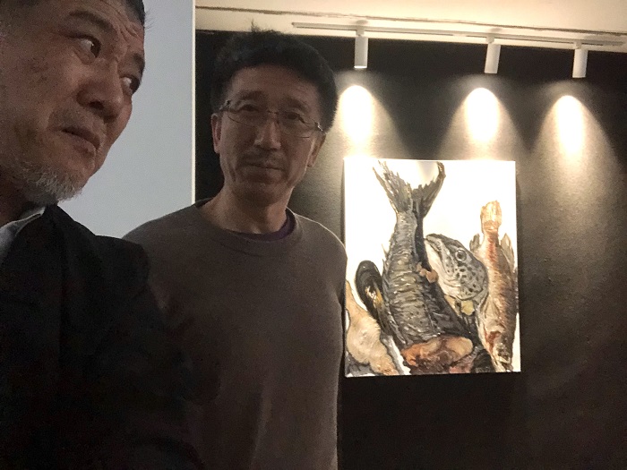 左起:倪军、王兴伟在偏锋画廊(摄影:倪军)
